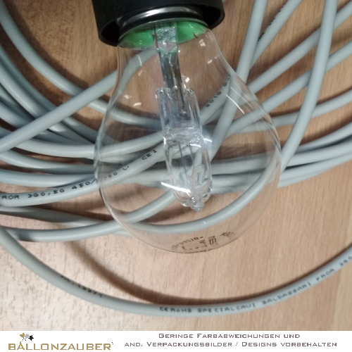 Dieses Halogenlicht wurde speziell für große Ballons mit einem Umfang von 265 cm bis 350 cm entwickelt und sorgt mit heller, weißer Lichtleistung für beeindruckende Effekte – ganz ohne Akku oder Batterie.